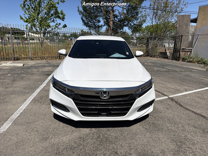 2019 Honda Accord Sport — White exterior, Black interior. Powered by a 1.5L Turbo I4 (192 hp / 192 lb-ft) with a smooth CVT. Standard factory equipment includes an 8-inch touchscreen with Apple CarPlay and Android Auto, Bluetooth and USB ports, sport-bolstered cloth seating, push-button start and remote keyless entry, dual-zone automatic climate control, cruise control and steering-wheel audio/phone controls, multi-angle rearview camera, ABS, traction control/vehicle stability assist, full airbag system and tire pressure monitoring. Fuel economy is 29 MPG city / 35 MPG highway. Vehicle is in excellent overall condition — ready to enjoy.