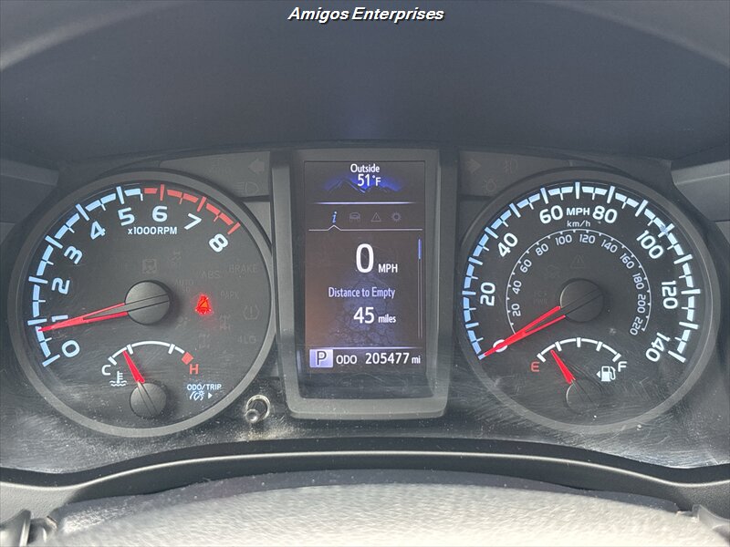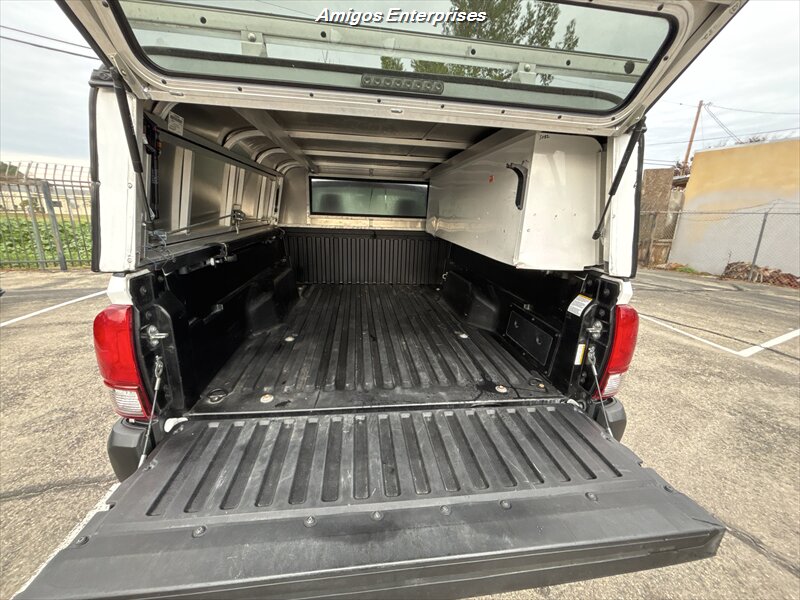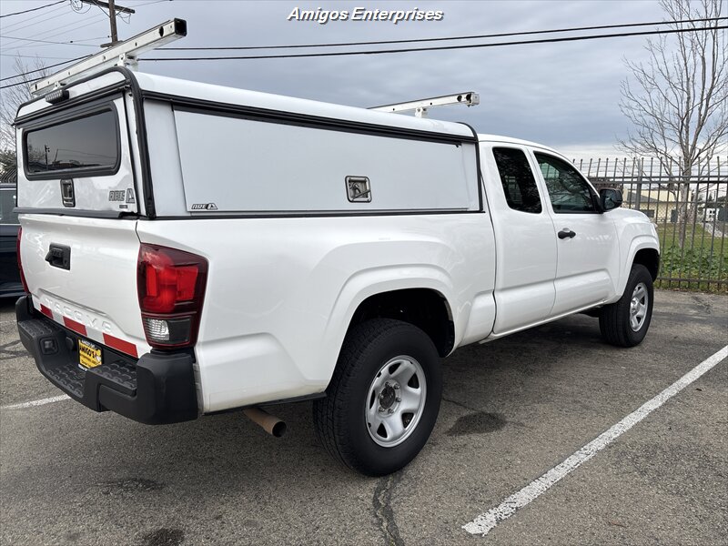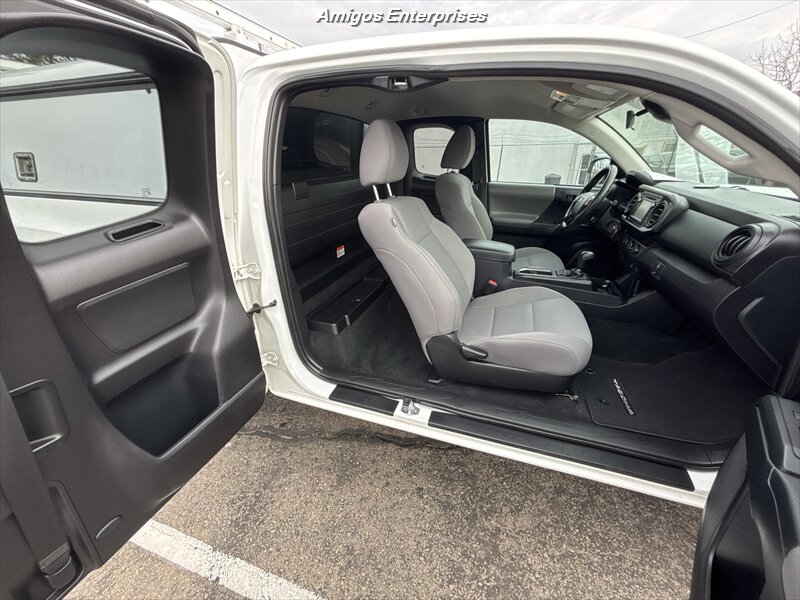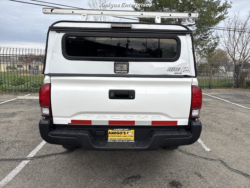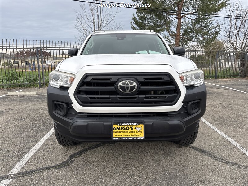 2019 Toyota Tacoma SR5, Super White exterior with Black interior and Caramel accent stitching. Powered by a 2.7L I4 (159 hp, 180 lb-ft) and rated at 20 MPG city / 23 MPG highway. Factory-equipped with Toyota’s advanced safety suite (Toyota Safety Sense: pre-collision with pedestrian detection, lane departure alert, automatic high beams and adaptive cruise control), a 7-inch Entune infotainment touchscreen with Bluetooth, USB and auxiliary inputs, rearview camera, cruise control, power windows/locks, keyless entry, durable cloth seating with caramel accent stitching, and practical bed tie-downs — vehicle is in excellent overall condition.